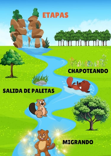 Migrando: es la ultima de todas las etapas, donde los castores evalúan su paso por la colonia y están listos para marcharse a Manada